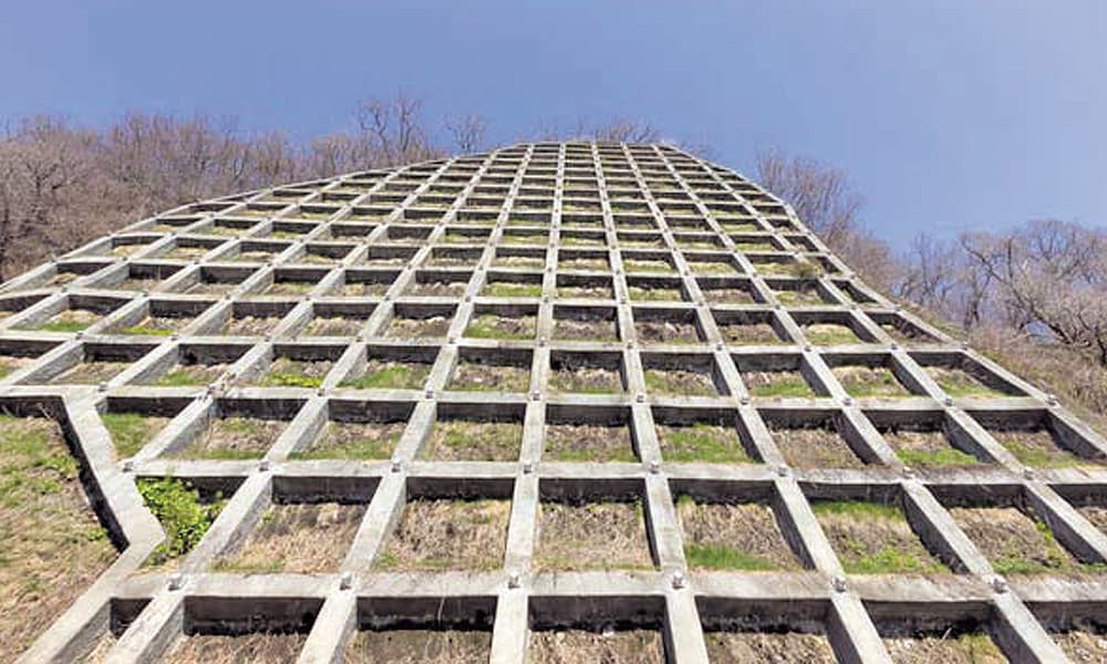 法面の安定を図り、地すべり等の防止を目的に用いられる工法です。ロックボルト工やグラウンドアンカー工と併用でき、より抑止効果を期待できます。また、枠内に植生することが可能で、環境に優しくなります。