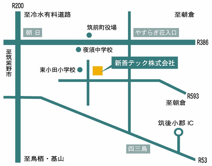| 所 在 地 | 〈本社〉〒838-0213 福岡県朝倉郡筑前町安野90番地2 TEL 0946-42-5781 / FAX 0946-42-4637 shinzen-tech@arrow.ocn.ne.jp |