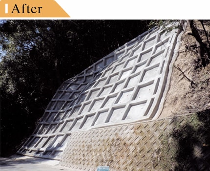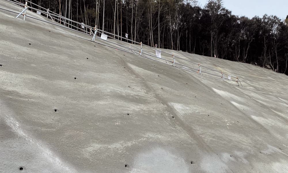 岩肌の地山や、雨水の浸入による崩壊防止の場合に利用されます。