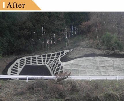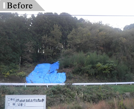 法面に吹付を行ない、緑化することで、法面の安定、自然化を促進させます。