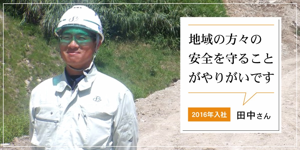 A.嬉しかった事はやはり地域貢献が出来た事です。災害地域での復旧工事・対策工事では、この工事のおかげで災害を防ぎ、地域の方々の安全を守ることに貢献出来ていると考えると、とてもやりがいがあります。